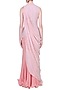 This set features a light pink sleeveless short kurta in lucknowi georgette base embedded with mukaish embroidery on the bodice. It has a nehru collar and scalloped potli button closure detailing on the front placket. It is paired with a light pink neatly trimmed pleated lehenga skirt along with a light pink embroidered dupatta.