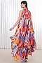 Featuring a multi-colored high-low dress in chiffon base with pop abstract print and neck band tie-up embroidery.