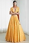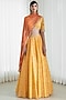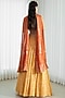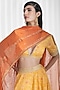 Featuring a mustard lehenga in organic cotton base with print and lace detailing. It is paired with a matching blouse and an orange dupatta in chiffon base having mirror work.