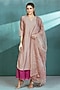 Featuring a rosy brown kurta in chanderi base with gota embroidery. It is paired with contrasting purple light chanderi embroidered sharara pants and a rosy brown organza dupatta having embroidery.