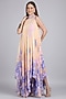 Featuring an ivory and purple high-low dress in chiffon base with print and embroidery. It is paired with a belt. Accentuate it with statement earrings and heels for evening soirees.