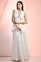 Featuring an off-white maxi dress in chiffon base with chantley hand embroidery. Accentuate it with dangler earrings and heels for a complete look.
