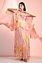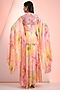Featuring a peach and pink maxi dress in chiffon base with print and cape sleeves. Accentuate it with dangler earrings and heels for a complete look.