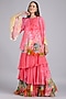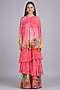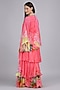 Featuring a pink layered dress in chiffon base with embroidery. Accentuate it with statement earrings and heels for evening soirees.