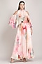 Featuring a pink dress in chiffon base with an elasticated waist and floral print. Accentuate it with statement earrings and heels for evening soirees.