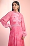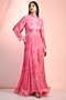 Featuring a pink maxi dress in chiffon base with print and pintuck lace detailing. Accentuate it with dangler earrings and heels for a complete look.