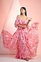 Featuring a pink off-shoulder flared maxi dress in chiffon base with print and lace detailing. Accentuate it with dangler earrings and heels for a complete look.
