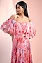 Pink Chiffon Printed Off-Shoulder Flared Maxi Dress