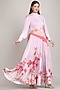Featuring a pink dress in silk jersey base with print and embroidery. It is paired with a printed scarf. Accentuate it with statement earrings and heels for evening soirees.
