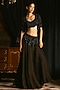 Featuring a black jacket in organza base with pearls, cutdana, sequins and swarovski embroidery. It is paired with an embroidered blouse and a skirt. Accentuate it with statement earring and stiletto heels for a bold, contemporary look, perfect for cocktail nights or receptions.