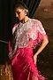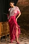 Featuring a fuchsia pink cape in organza and pure satin base with pearl, cutdana and sequins embroidery, including feather detail. It is paired with a bustier and a draped skirt having feather detailing. Accentuate it with statement earrings and sleek heels for a high-fashion edge, perfect for cocktail parties, receptions and glamorous evening events.