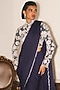 Featuring a navy blue draped saree in crepe and satin georgette base. It is paired with a blouse having full sleeves, pearls, sequins, cutdana and crystal embroidery. Accentuate it with pearl drop earrings and metallic heels for an elegant statement, perfect for cocktail parties, receptions and festive evening events.