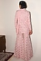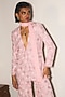 Featuring a pink jacket in crepe base with pearl, cutdana, sequins and resham embroidery. It is paired with embroidered sharara pants and a belt. Accentuate it with statement earrings and block heels for a fresh, modern look, perfect for festive celebrations, sangeet nights and daytime weddings.