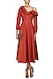 Flaming Orange Strappy Cascade Yoke Retro Midi Dress