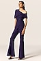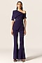 Featuring an ink blue off-shoulder top in crepe spandex base with cinched waist and crystal detail. It is paired with wide trumpet pants. Accentuate it with dangler earrings, a clutch and block heels for any special events or after party.