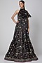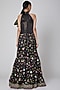 Featuring a black dress in organza polyester base with appliques embroidery. It has a halter neckline.