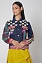 Featuring a navy blue jacket in denim base with gota embroidered patch work. This contains only one piece.