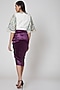 Featuring a purple skirt in lido satin base with an asymmetric drape. This contains one piece only.