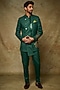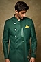 Featuring a bottle green asymmetric indo-western in ruby silk base with acrylic and motifs hand work. It is paired with matching pants.