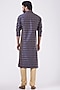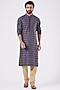 Featuring an ink blue kurta in art silk jacquard base. It is paired with contrasting churidar pants.