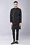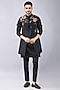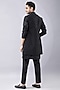 Featuring a black bundi jacket in art silk base with print and hand embroidery. It is paired with an embroidered ruby silk kurta and churidar pants. Style it with mojaris for a festive occasion, wedding or engagement ceremony.