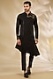 Featuring a black kurta in viscose base with cutdana embroidery and floral print. It is paired with pants. Style it with kolhapuri sandals for a festive occasion or sangeet ceremony.