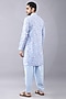 Featuring a blue kurta in ruby silk base with print and thread work. It is paired with salwar pants. Style it with kolhapuri sandals for a festive occasion, mehendi, wedding, engagement or sangeet ceremonies.