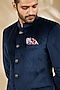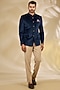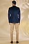 Featuring a blue bandhgala in velvet base. It is paired with viscose trousers. Style it with mojaris for wedding, engagement or sangeet ceremonies.