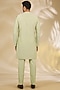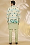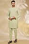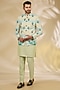 Featuring a green bandhgala in cotton silk base with digital print and sequins embroidery. It is paired with a kurta and pants. Style it with mojaris for wedding, mehendi, engagement or sangeet ceremonies.