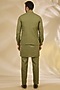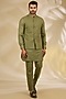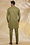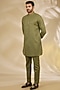 Featuring a green bundi jacket in ruby silk base with dori and thread embroidery. It is paired with a kurta and pants. Style it with mojaris for wedding, mehendi, engagement or sangeet ceremonies.
