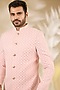 Featuring a peach bandhgala in art silk base with sequins work and thread embroidery. It is paired with a cotton silk kurta and pants. Style it with mojaris for wedding, engagement or sangeet ceremonies.