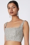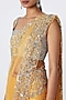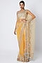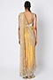 Featuring a yellow saree in tulle base with crystal and aari hand embroidery. It is paired with a matching blouse.