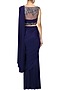 Featuring a cobalt blue drape saree in silk jersey with pearls, sequins, crystals and beads hand embroidery. It is paired with matching blouse with hand embroidery on the neckline and hem.