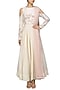Featuring an ivory cold shoulder anarkali in silk chanderi base with gold sequins, pearl and bead work on bodice and sleeves. It is paired with matching churidaar pants and pink chiffon lurex dupatta.