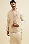 Beige Art Silk & Satin Sequins Embroidered Nehru Jacket Set
