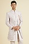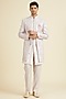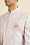 Featuring a lilac indowestern jacket in blended viscose base with print and embroidery. It is paired with pants and a pocket pin. Perfect attire for a sangeet ceremony, exuding traditional charm and timeless elegance.