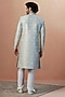 Smoke Grey Art Silk Floral Printed Self-Textured Sherwani Set