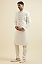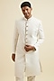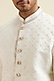 Featuring a white sherwani in blended rayon base with metallic thread embroidery. It is paired with pyjama pants. Perfect attire for a wedding or festive ceremony, exuding traditional charm and timeless elegance.