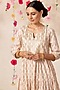 Featuring a blush pink tiered kurta in cotton base with hand block print, badla and gota embellishments. It is paired with matching printed pants.