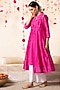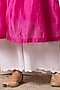 Featuring a magenta pink paneled cape in chanderi base with badla and gota embellishments. It is paired with contrasting white cotton scalloped pants and an inner.