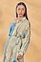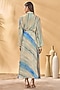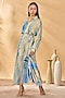 Masaba presents a beige and blue shirt in crepe silk base with peasant sleeves and placement print. It is paired with a wrap around skirt having tie-up detail and placement print. Accentuate it with dangler earrings, a sling bag and heels for evening soirees.