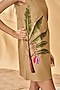 Beige Cotton Linen Printed & Embellished Mini Shift Dress