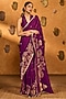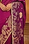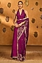 Masaba presents a mesmerizing berry wine saree in jacquard base. It is paired with an unstitched blouse. Elevate the look with statement jhumkas, embellished heels, a potli bag and a sleek bun for regal weddings or sangeet ceremonies.