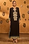 Masaba presents a mesmerizing black kaftan in crepe base with hand embroidery, foil border and side slits detail. Enhance your style by embracing ornate chandbalis, lustrous metallic heels, soft curls and a clutch to evoke festive grandeur.