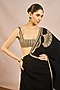 Masaba presents a black draped saree in crepe base with sitara and dori embroidery. It is paired with an embroidered blouse and a tulle jacket. Style this luxurious saree with statement earrings and bangles for a wedding or festive occasion to complement the regal vibe.