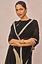 Featuring a black saree in georgette blend base with chaand paankh motif embroidery. It is paired with a crepe hand embroidered blouse. Elevate the look with kundan or statement jewellery, paired with a chic potli bag and elegant heels for a polished finish. Ideal for weddings, sangeet celebrations, cocktail soirees, or festive receptions.