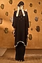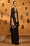 Masaba presents a mesmerizing black oversized cape in organza base with hand embroidery and foil print. It is paired with a crepe camisole having heartbeat foil print and a crepe draped skirt. Elevate the look with statement jhumkas, embellished heels, a clutch and a sleek bun for opulent sangeet ceremonies or cocktail soirees.