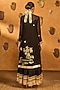 Masaba presents a mesmerizing black crushed anarkali in raw silk base with lampi gota embellishment and adjustable straps. It is paired with a georgette placement foil printed straight kurta having lampi gota and gold lace embellishment. Elevate your sangeet ensemble with dangler earrings, block heels and a clutch for a sophisticated look.