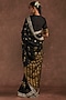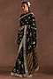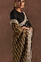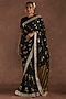 Featuring a black woven jacquard saree in silk base with tissue embellished pallu and gota detailing. It is paired with a raw silk blouse piece. Style it with statement earrings and mojaris.