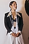 Featuring a black and white lehenga in raw silk base with sequin detailing and gold zari kashmiri leaf motif embroidery. It is paired with a contrasting black scuba georgette embellished tailcoat blazer, a white dupion silk longline shirt having zari embroidered motifs, a black lace bustier and a can-can skirt.
